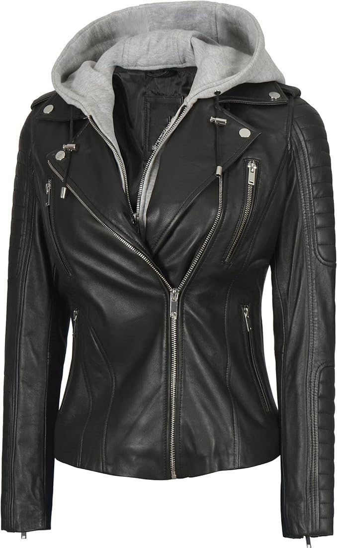 - PREMIUM QUALITY: This hooded women real leather jacket is expertly crafted from 100% high-quality real lambskin leather.